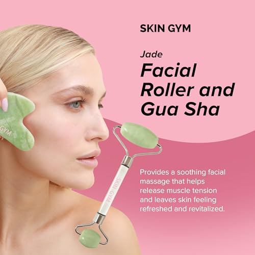 Skin Gym Facial Roller and Gua Sha Workout Set for Wrinkles and Fine Lines Anti-Aging Face Lift Skin Care Beauty Tool