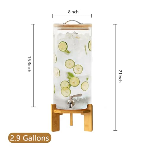 Beverage Dispenser, 2.9 Gallon Glass Drink Dispenser with Stand, Glass water dispenser with Spigot, Large Drink Dispensers for Parties,Bars,Restaurants, 11L