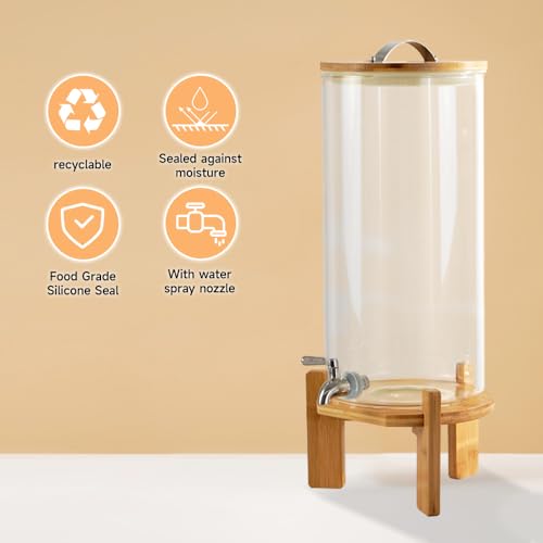 Premium Glass Material: The drink dispenser with stand is made of high-quality, food-grade, durable, thick, lead-free glass. It can hold both hot and cold drinks, is BPA-free, non-discoloring, and easy to clean.