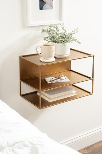 Kate and Laurel Nomi Modern Metal Floating Side Table with Storage, 18 x 10 x 12, Gold, Contemporary Tiered Floating End Table for Use as Wall Shelf for Small Spaces