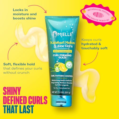 Mielle Curl Forming Glaze – Kalahari Melon & Aloe Vera Deep Hydration Styling Gel for Dry, Curly and Textured Hair – Enhances Curl Definition with Long-Lasting Hold & Shine (7.5oz)