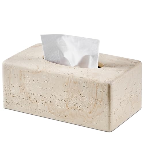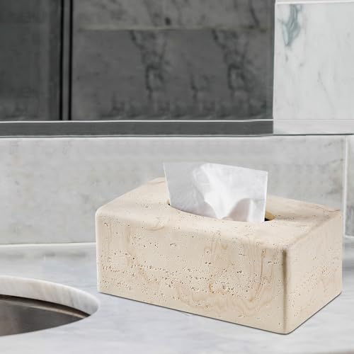 Natural Travertine Textures Tissue Box Cover Rectangular for Home Decor,Resin Heavy Tissue Box Holder for Bathroom Countertop,Tabletop,Bedside Table,Office