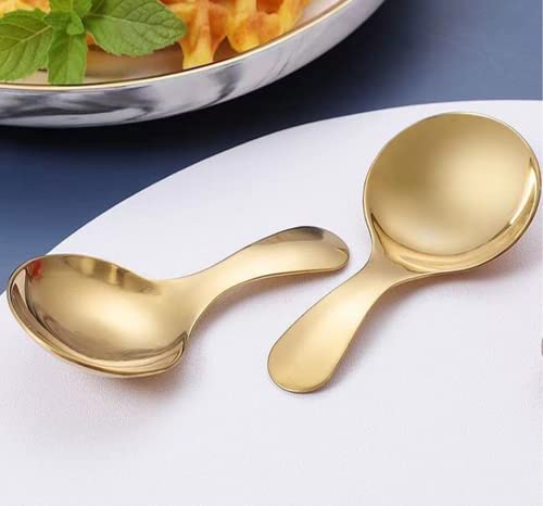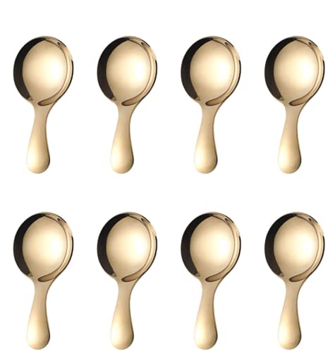 PHAETON 8PCS Golden Stainless Steel Short Handle Spoons Soup Spoons Condiments Spoon Dessert Spoon Tea Coffee Spoons Jars Scoops