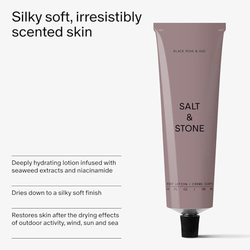 Salt & Stone Body Lotion for Women & Men | Hydrates, Nourishes & Softens Skin | Restores Dry Skin | Fast-Absorbing | Cruelty-Free & Vegan (100 ml) (Black Rose & Oud)