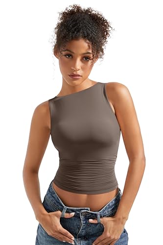 SUUKSESS Women Double Lined Going Out Basic Tank Tops Ruched Summer T Shirts