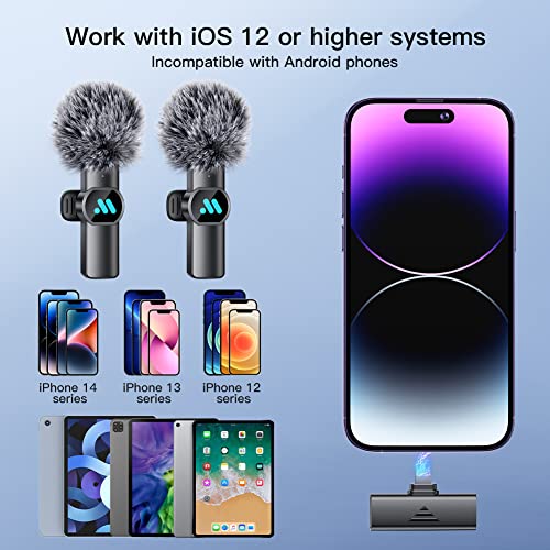 For wireless microphone supports IOS 12 and above systems and can be used with iPhone 7/7 Plus,for 8/8 Plus,for X/XR/XS/XS Max,for 11/11 Pro/11 Pro Max,for 12/12 Pro/12 Pro Max,for 13/13 Pro/13 Pro Max, and for 14/14 Pro;for IPad 2/3/4… 9th generation