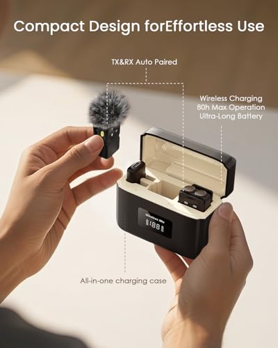 Worry-Free Battery Life:This Bluetooth microphone comes with dual wireless microphones and a compact charging case that gives the dual microphones over 20 hours of continuous use on a full charge. The charging case also ensures extended battery life, making it ideal for extended recording sessions or use on the go.