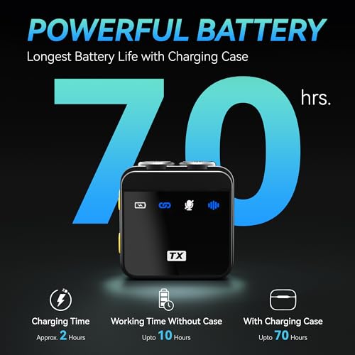 70-Hour Battery Life: Each transmitter/microphone offers 10 hours of continuous use. With a total battery life of 70 hours, this wireless microphone system is perfect for interviews, vlogs, and presentations. You can focus on your content without worrying about frequent recharging. Whether you’re a content creator, vlogger, or journalist, this long-lasting battery life ensures you’re always ready to capture the moment.