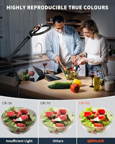 10″ Ring Light Tripod for iPhone Overhead Phone Mount Holder, Flexible Ring Light with Stand – LED CRI >95 & Adjustable 70″ Height, Phone Stand for Recording Video Camera Selfie Vlog TikTok YouTube