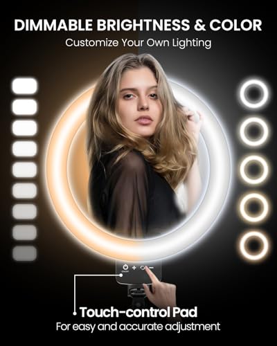 Dimmable Selfie Ring Light & Touchpad Control: Our ring light tripod for iphone comes with 3 lighting modes: warm light, cool white, and daylight. Each mode has 10 brightness levels, giving you a total of 30 options to suit all your needs in different situations. Plus, it features a high-sensitivity touch panel, which is more convenient and durable than traditional mechanical buttons. You can easily and quickly adjust the light mode and brightness even while live streaming. It’s an absolute must-have for influencers