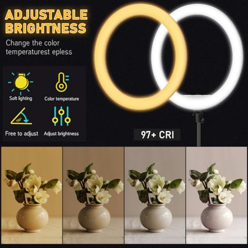 Ring light with stand: Our light ring has brightness and color temperature adjustment functions, and 416 SMD LEDs emit excellent light. Brightness from 0% to 100%; color temperature adjustable from 3000K-6000K. to meet your various needs. It has a highly responsive touchpad to control the lights. More convenient and longer life than traditional mechanical buttons.