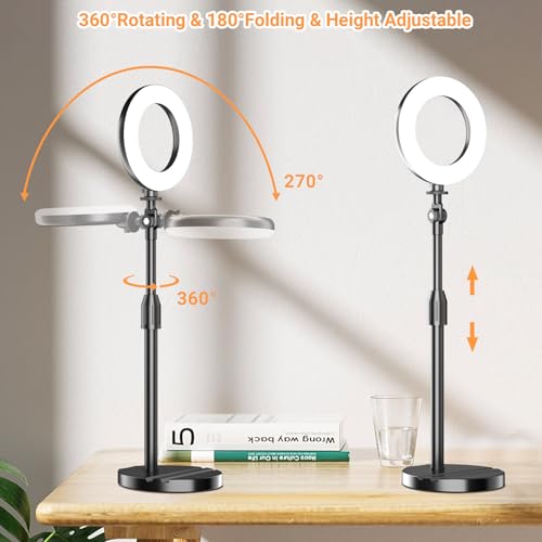 【Flexible & Small Footprint】The ring lamp can be rotating 360° and folding 180° up and down for more convenient use. The 5-inch size is easy to store in the included pouch. It’s small but bright suitable for travel, business trips, and office work