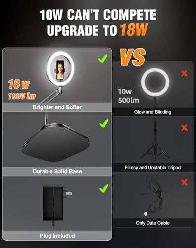 Upgrade 18W Ring Light with Stand Tripod for iPhone, 10” Ultra Bright Overhead Phone Camera Mount Circle Light with Remote Control for Video Recording,Content Creation,Streaming,TikTok,YouTube