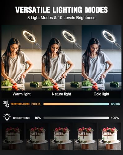 Best Adjustable Ring Light with Stand: The Evershop ring light tripod for iphone is a must-have for content creators and influencers. It features 3 color temperatures (Warm, Natural, Cool) and 10 brightness levels, allowing you to customize the lighting for video recording, photos, live streams, makeup, online meetings, TikTok, YouTube, and more. It delivers more accurate, lifelike, and vibrant results. With 30 adjustable settings, this ring light meets all your needs in any shooting scenario