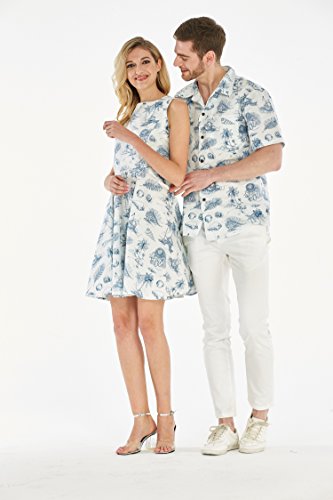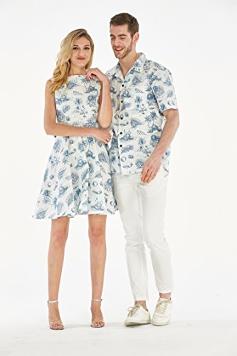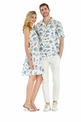 Couple Matching Hawaiian Luau Cruise Outfit Shirt Vintage Dress Classic White