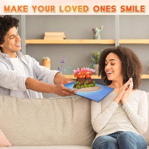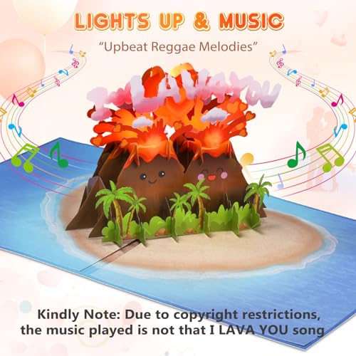 A MAGICAL SUPRISE: Forget boring valentines or anniversary cards for him or her. We created a magical effect on this music Valentine’s Day card. When she opened the card, two interesting volcanoes pop up, and the smoke from the volcanoes formed the I LAVA YOU copy and the little love heart was ejected. With colored lights, create a fiery volcanic eruption scene. This lighting design has visual appeal and evokes funny and romantic memories between you and your loved.