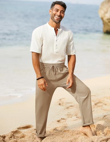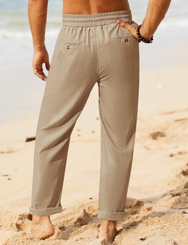 iWoo Linen Pants Men Casual 2025 Summer Beach Elastic Drawstring Waist Yoga Pants Travel Baggy Work Pant Pajama