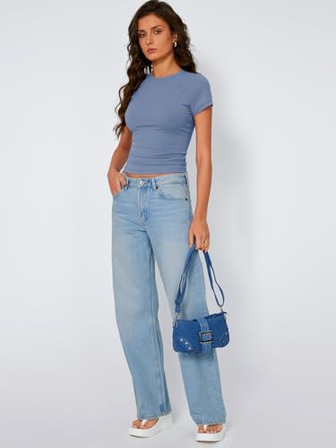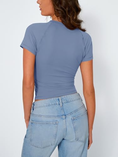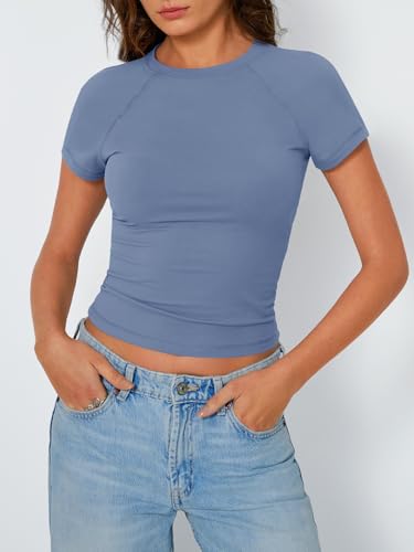 Trendy Queen Womens Short Sleeve Shirts Summer 2025 Raglan T Shirts Basic Tees Crewneck Crop Tops Slim Fit Y2K Clothes