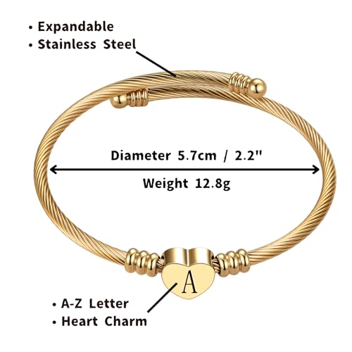 Initial Letter A to Z Gold Love Heart Bangle Cuff Bracelet for Women Alphabet Family Name Stainless Steel