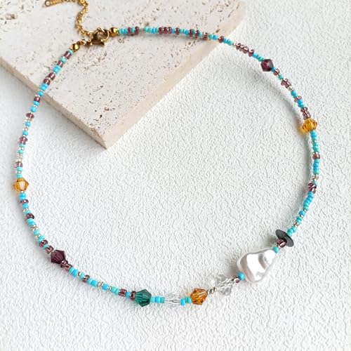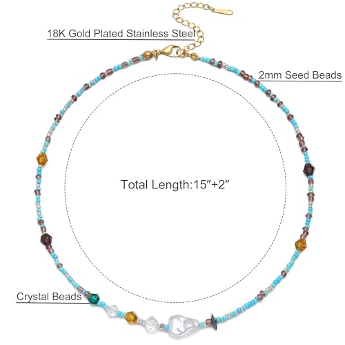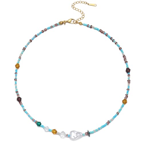 S.J JEWELRY Beaded Necklaces for Women Colorful Seed Bead Necklace Boho Necklaces for Women Beach Necklaces Summer Necklace Choker for Women Stainless Steel 18K Gold Plated