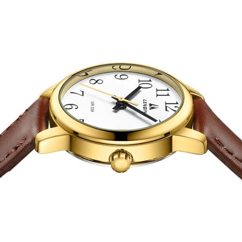 LN LENQIN Ladies Watches Analog Quartz Watch for Women Waterproof Women’s Wrist Watches Easy Reader Womens Watch with Leather Strap