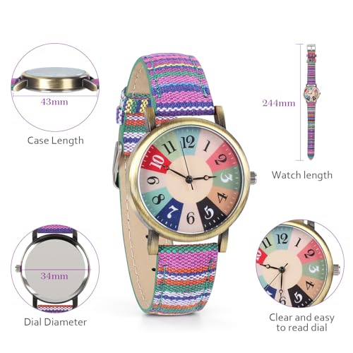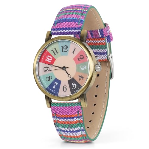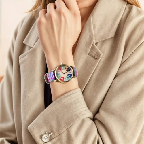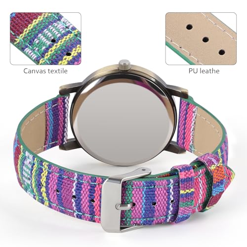 Watches for Women, Upgraded Bohemian Multicolor Rainbow Pattern Ladies’ Watches, PU Leather Strap,Gifts Suitable for Best Friends,Elders and Parents