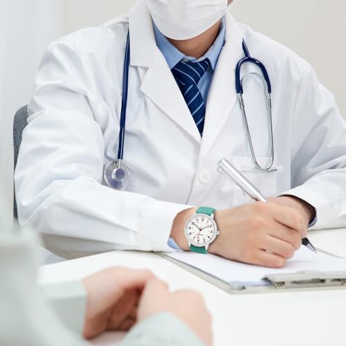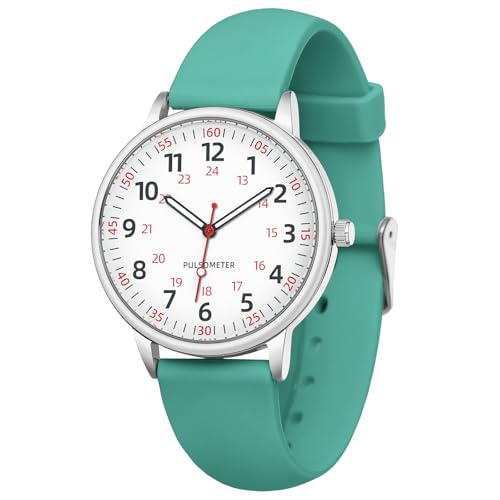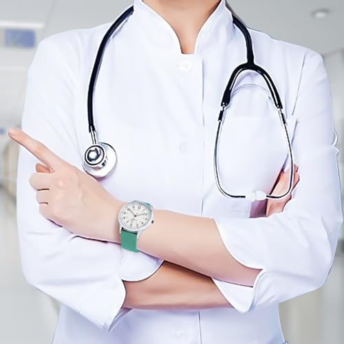 Women Watch for Nurse Easy to Read Dial Wristwatches Silicone Band Water Resistant Watches Second Hand and 24 Hour