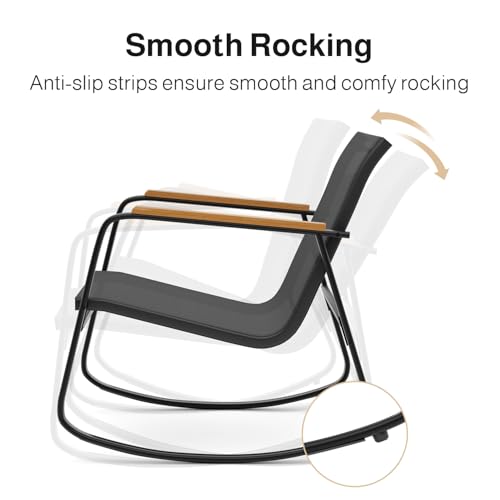 Aiho 3 Piece Rocking Bistro Set, Textilene Fabric Patio Furniture Set, Front Porch Rocker Chairs with Coffee Table for Lawn, Garden, Balcony, Poolside (Black)