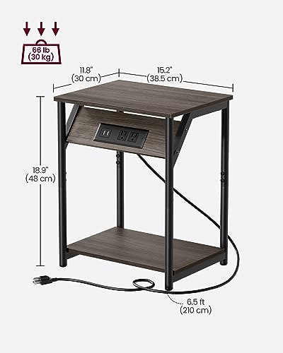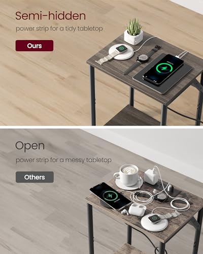 VASAGLE End Table with Charging Station, Set of 2, Small Side Tables for Living Room, Bedroom, Nightstand with Outlets and USB Ports, Bedside Table with Storage Shelf, Chestnut Brown and Black