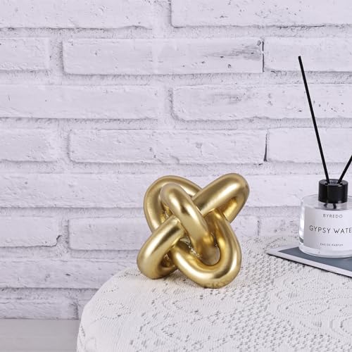 Golden Knot Statue, Three Knot Sculpture Home Decor Accents, Knot Sculptures and Statues for Rustic Coffee Table Living Room Dining Table Entryway Entrance Shelf Small Decorations and Accessories