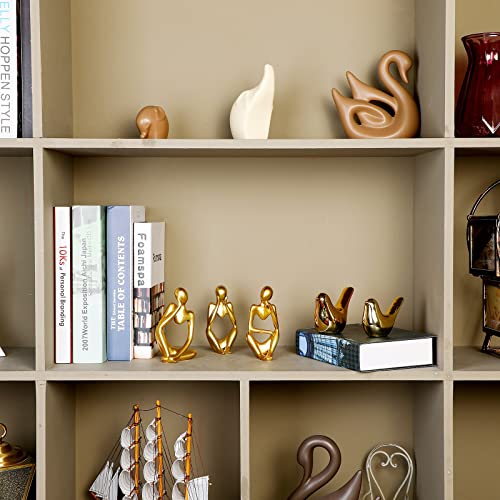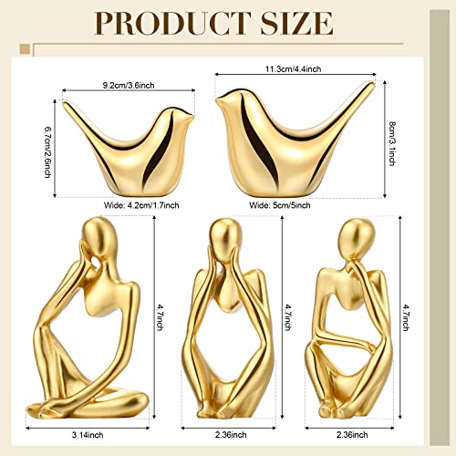 Qunclay 5 Pcs Gold Decor Accents Set Resin Thinker Statue Small Bird Figurines Abstract Decorative Modern Collectible Sculpture for Home Office Bookshelf Living Room Desktop Decor(Gold)