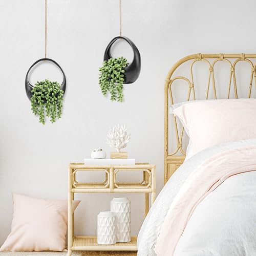 Der Rose 2 Pack Fake Hanging Plants Artificial Succulents Plants Indoor for Black Boho Bathroom Wall Decor