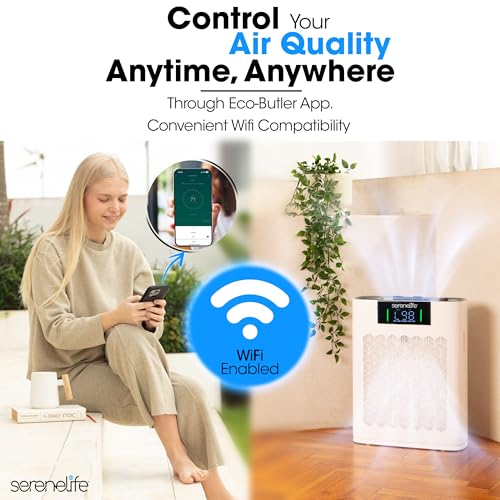 SereneLife HEPA Air Purifier for Home – Smart WiFi & App Control, Ultra-Quiet Air Purifier for Bedrooms & Large Rooms, Removes Dust, Pet Hair & Odors, Ideal for Pets & Allergies (1,076 Sq Ft, White)