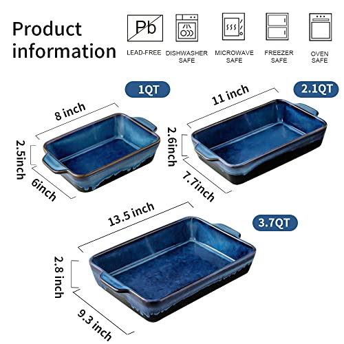 KOOV Bakeware Set, Ceramic Baking Dish Set, Rectangular Casserole Dish Set, lasagna Pan, Baking Pans Set for Cooking, Cake Dinner, Kitchen, 9 x 13 Inches, Reactive Glaze 3-Piece (Nebula Blue)