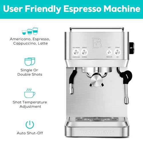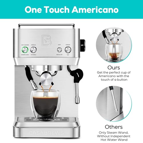 Brew Your Favorite Coffee at Home: The CASABREWS espresso machine with milk frother lets you create all your favorite espresso drinks, including Americano, latte, cappuccino, and macchiato. Its sleek, durable stainless steel design makes it a stylish addition to any kitchen