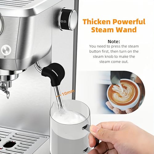 Espresso Machine 20 Bar, Espresso Coffee Maker with Professional Milk Frother Steam Wand for Cappuccino & Latte, 49oz Removable Water Tank for Home, Stainless Steel
