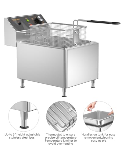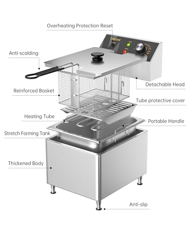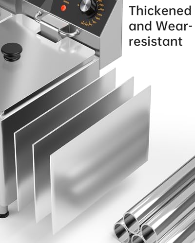 GENEROUS CAPACITY: With a 12-liter oil capacity and 10-pound food capacity, this deep fryer ensures uniform heating and perfect golden results every time for up to 12-15 people, it has all you need to prepare perfect French fries and delicious fried meals. Perfect for commercial uses, such as restaurants, supermarkets, fast food stands, snack bars, parties