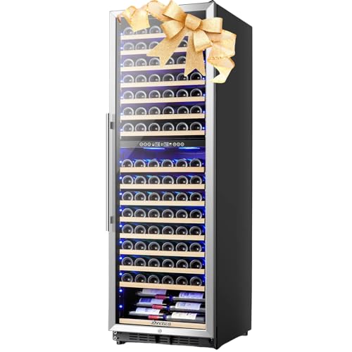 【𝐄𝐧𝐞𝐫𝐠𝐲 𝐄𝐟𝐟𝐢𝐜𝐢𝐞𝐧𝐭 𝐂𝐨𝐦𝐩𝐫𝐞𝐬𝐬𝐨𝐫 & 𝐅𝐚𝐧 𝐂𝐨𝐨𝐥𝐢𝐧𝐠 𝐒𝐲𝐬𝐭𝐞𝐦】This large wine fridge an internal powerful fan circulates air in the unit for evenly distributing cold air to every corner inside the cooler, and prevents huge differences in temperature between the top and bottom shelves. an advanced compressor that effectively provides Fast, Strong, Stable cooling and accurate Humidity The air circulation creates a frost-free environment that can store wine better.
