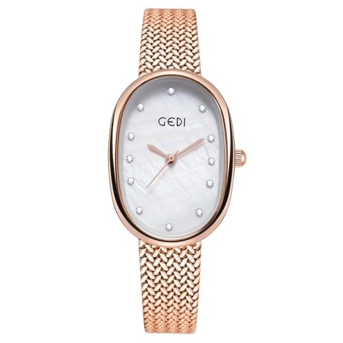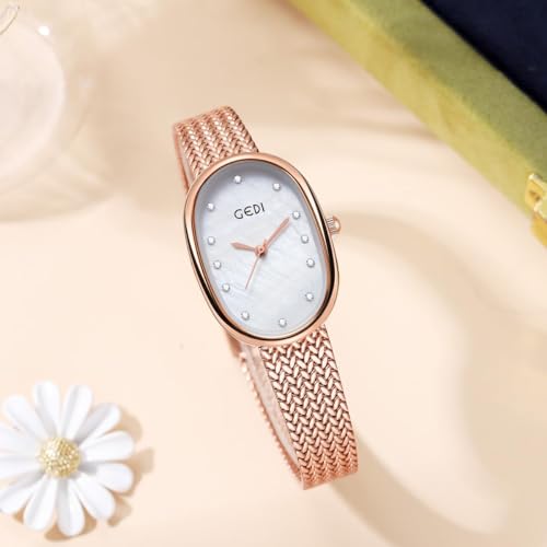 Gosasa Elegant Women’s Quartz Watch – Oval Dial, Slim & Cute, Modern Minimalist Design, 30m Waterproof, Mother-of-Pearl Face, Adjustable Stainless Steel Mesh Band
