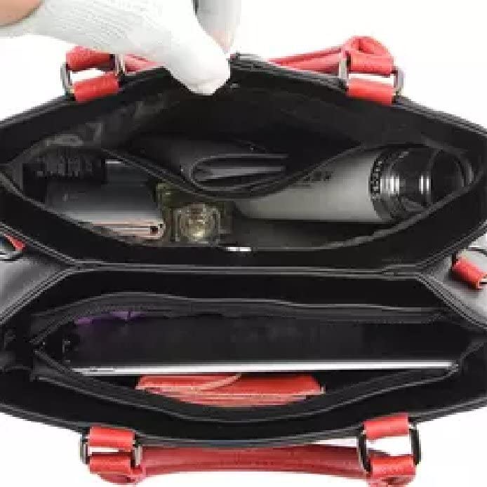 Fashion Leather Black with Red Handbags Medium for Women Luxury Shoulder Bag Tote Top-Handle Satchel Purses for Ladies