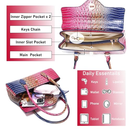 Leather Crocodile Pattern Top Handle Handbag for Women High-value Satchel Tote Purse for Ladies