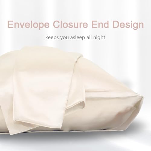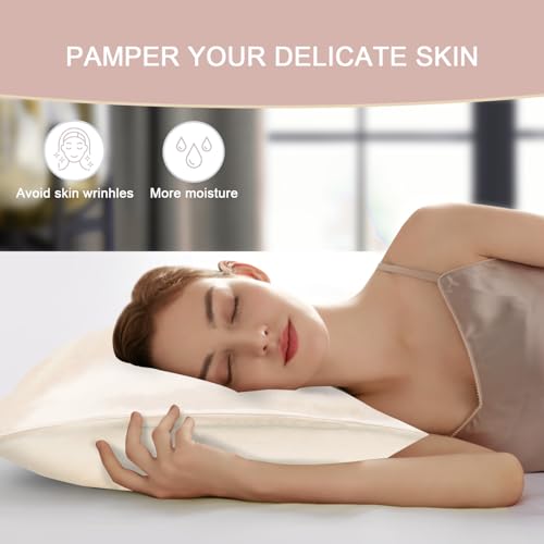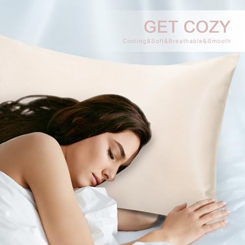 2 Piece Satin Pillowcase for Hair and Skin Similar to Silk Pillow Cases with Envelope Closure Cooling Pillow Cases for Sleeping Gifts for Women Men (20″x30″Queen Size,Champagne)