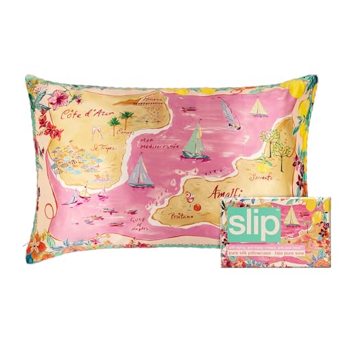 slip Queen Pure Silk Pillow Case – 100% Pure 22 Momme Mulberry Silk – Queen Size Standard Pillow Case – Anti-Aging, Anti-BedHead, Anti-Sleep Crease, Beach Club (20″ x 30″)