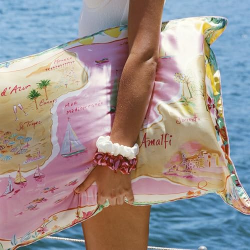 Includes: 1 x beach club pure silk queen pillowcase with summer stripe piping and invisible zipper closure (20″ x 30″ / 51cm x 76cm)
