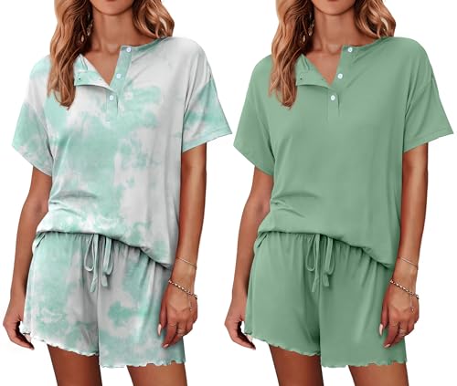 Ekouaer 2 Pack Womens Pajama Sets Short Sleeve Top with Shorts Soft Comfy Loungewear Sleepwear S-XXL