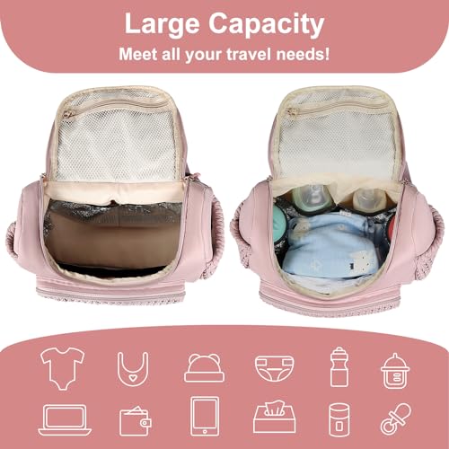 Geestock Diaper Bag Small Diaper Backpack, Stylish Quilted Baby Backpacks, Mini Maternity Bags, with Changing Pad, Pacifier Case & Stroller Straps, Parents Essentials Diaper Bag, Pink