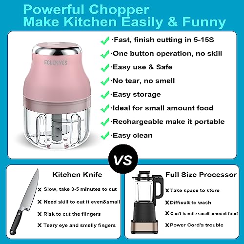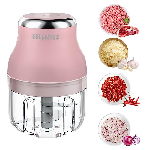 Vegetable Chopper, Electric Garlic Chopper, 250ML USB Rechargeable Mini Blender, Powerful Small Food Processor, Blender to Vegetable, Wireless Food Cutter for Ginger, Chili, Fruit, Meat, etc(Pink)