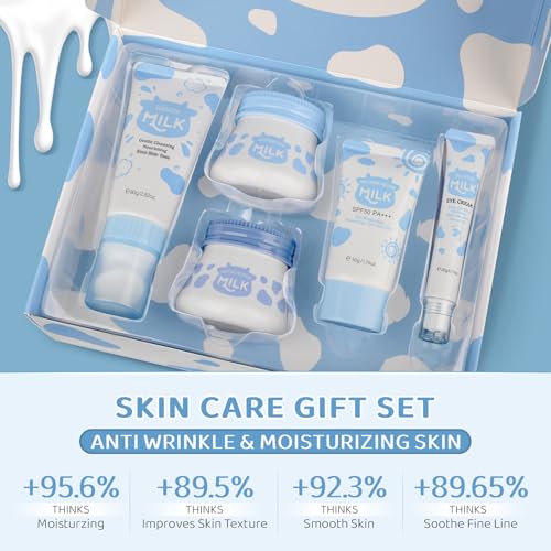 Skin Care Routine Set For Women, Anti Aging Milk Skin Care Gift Set For Acne, Wrinkles, Travel Size Face Care Kit With Hyaluronic Acid For Teenage Girls, Soothing Pores, Deep Moisturizing.