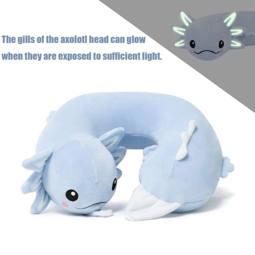 Niuniu Daddy Axolotl Neck Pillow for Traveling, Memory Foam Cervical Travel Neck Support Pillows Portable for Airplane Car Sleep, Long Trip Age 8+ Children with Boys Girls Including Adults