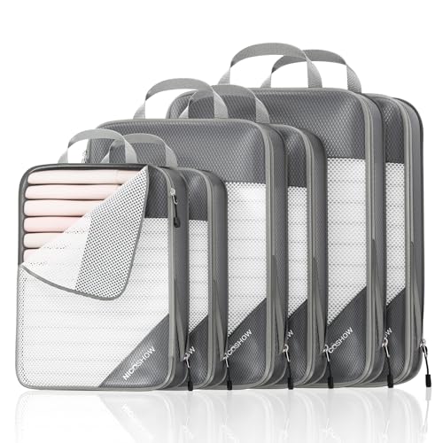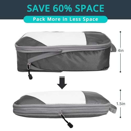 6 Set Compression Packing Cubes for Travel – Compressible, Lightweight, and Space-Saving Packing Cubes, Travel Essentials for Women, Grey